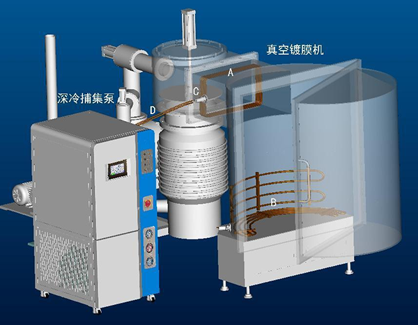 2.在真空系統中,水蒸氣是最大的污染源,因此在要求更高的鍍膜品質中,若能得到更低的蒸氣分壓,可以增強膜層的附著性能,提升鍍膜品質,在蒸鍍各類裝飾材料過程中避免出現色差,在塑膠基板蒸鍍過程中可使角落表面呈均勻平整狀態。寒一深冷捕集泵為何能加快高真空裝置的抽氣速度并提高真空度將一個溫度極低的深冷盤管放置在真空腔室內或者油擴散泵口,根據氣體的低溫冷凝效應,可以迅速使真空系統中的水蒸氣及其它氣體凝結在深冷盤管上,由此可以快速達到降低真空腔室內氣壓的效果,大幅度減少抽真空的時間,同時可使真空度提高半個到一個數量級,因而大大提高生產效率,節約生產成本,所以被稱為真空業界的好幫手,真空鍍膜系統的節能先鋒。