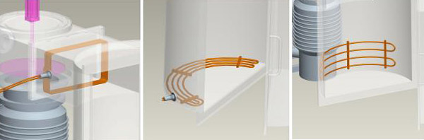 可根據用戶的具體要求設計專用的制冷盤管,制冷盤管通常有螺旋形、盤旋形、蛇形或其他形狀或有用戶自己選擇。常見盤管如下圖所示