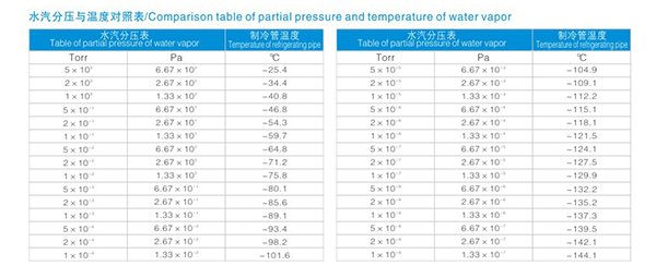 可在下表中查到你系統的極限壓力,根據該壓力找到同行右邊對應的溫度數值就是你所需的制冷盤管的表面溫度,這一溫度能提供90%的水汽捕集效率。